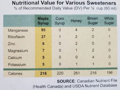 Maple syrup provides several essential nutrients and it stands out as a versatile and flavorful sweetener that contains more nutrients than other sweeteners. It contains important nutrients such as calcium, copper, riboflavin and manganese. Moreover, there are 78.2 mg of polyphenols in a 60 ml serving of maple syrup.
